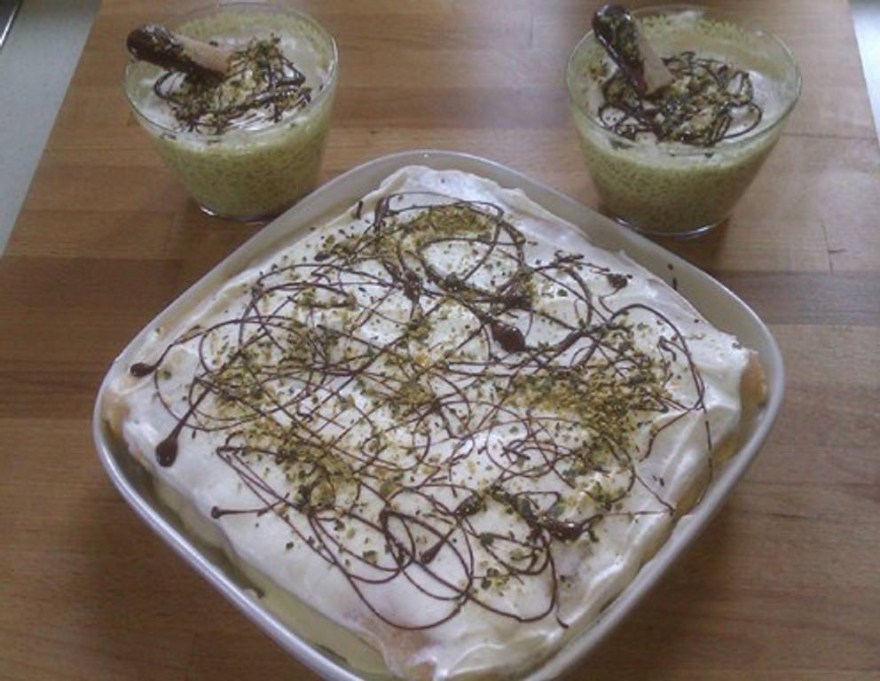 - Mit den grob gehackten Kürbiskernen (gibts fertig z.B. bei Hofer) bestreuen und mit etwas flüssiger Schokolade verzieren (kurz in der Mikrowelle erwärmen und mit einem Kaffeelöffel aufträufeln). Über Nacht in den Kühlschrank stellen. Das Steirertiramisu ist perfekte Nachspeise oder auch zur Kaffeejause ein Genuss!