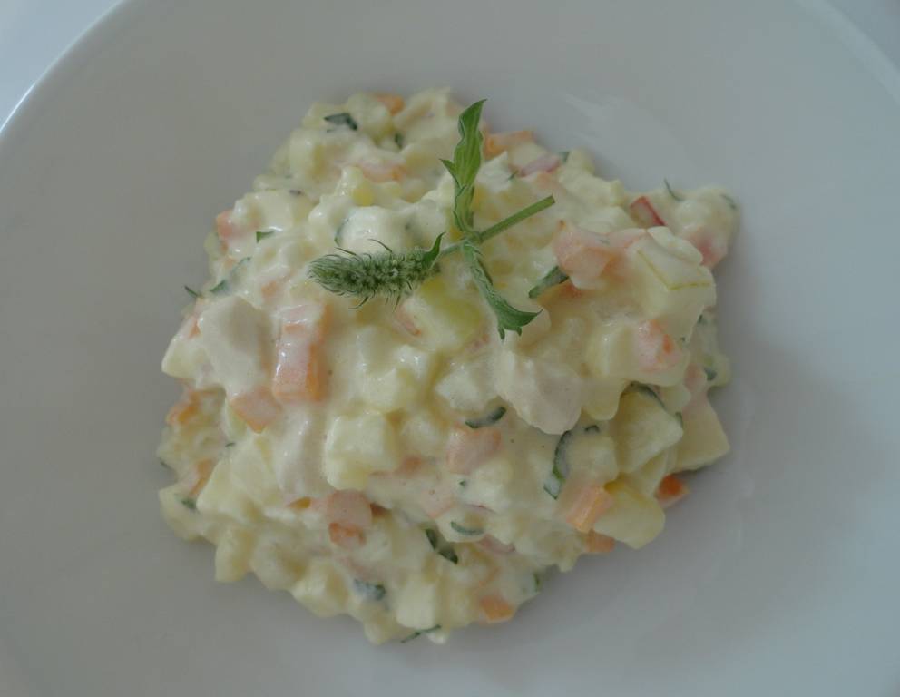 Die Gemüsemayonnaise sieht toll aus in ausgehöhlten Paradeisern und Paprika. Dazu passt auch Räucherlachs oder Heringsfilet.