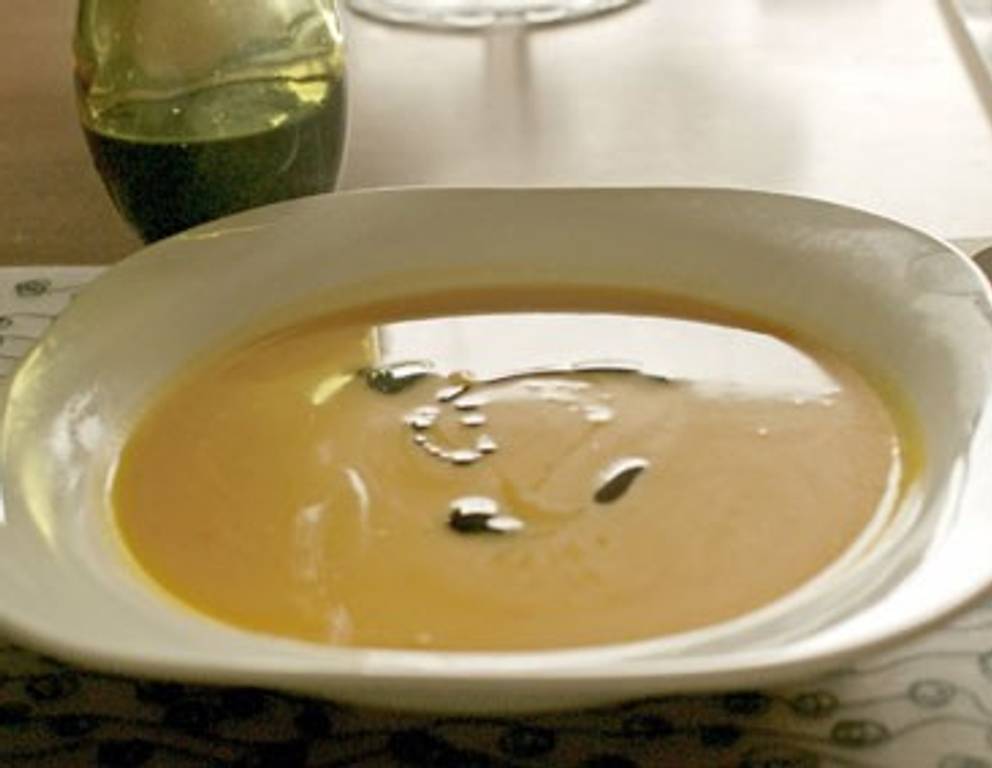 Am besten serviert man zu der einfache Kürbiscremesuppe ein paar selbstgemachte Croutons.