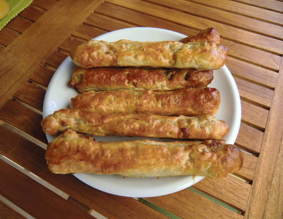 - Auf jedes Rechteck 1/6 der Bratwurstmasse, wurstförmig in der Mitte verteilen. Der Blätterteig wird nun, zuerst die kurzen Seiten und dann die langen Seiten, über die Bratwurstmasse geklappt, damit nichts ausrinnen kann. Anschließend die Sausage Rolls mit dem leicht schaumig geschlagenen Rest des Eis bepinseln. Im, auf 200°C vorgeheizten Backofen, bei Heißluft ca. 20 Minuten backen.