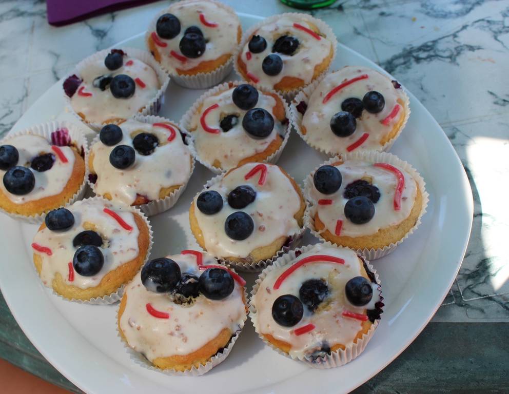 Heidelbeer-Cupcake-Smileys passen perfekt auf jede Kinderparty oder auch zum Faschingsfest werden sie nicht nur kleinen Naschkatzen munden. Eine kreativie Alternative zu herkömmlichen Partybuffets sind sie allemal.