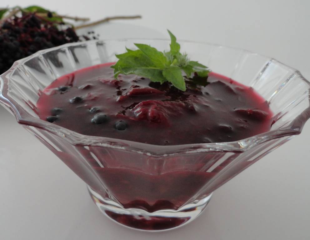 Der Holler-Zwetschken-Röster passt zu allen möglichen Mehlspeisen und schmeckt auch mit Vanilleeis zusammen wunderbar.