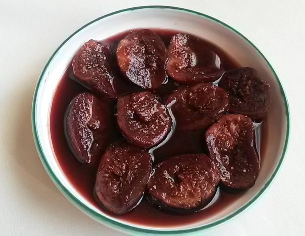 - Vor dem Servieren die halbierten Feigen in den Sirup legen und wiederholt erwärmen.