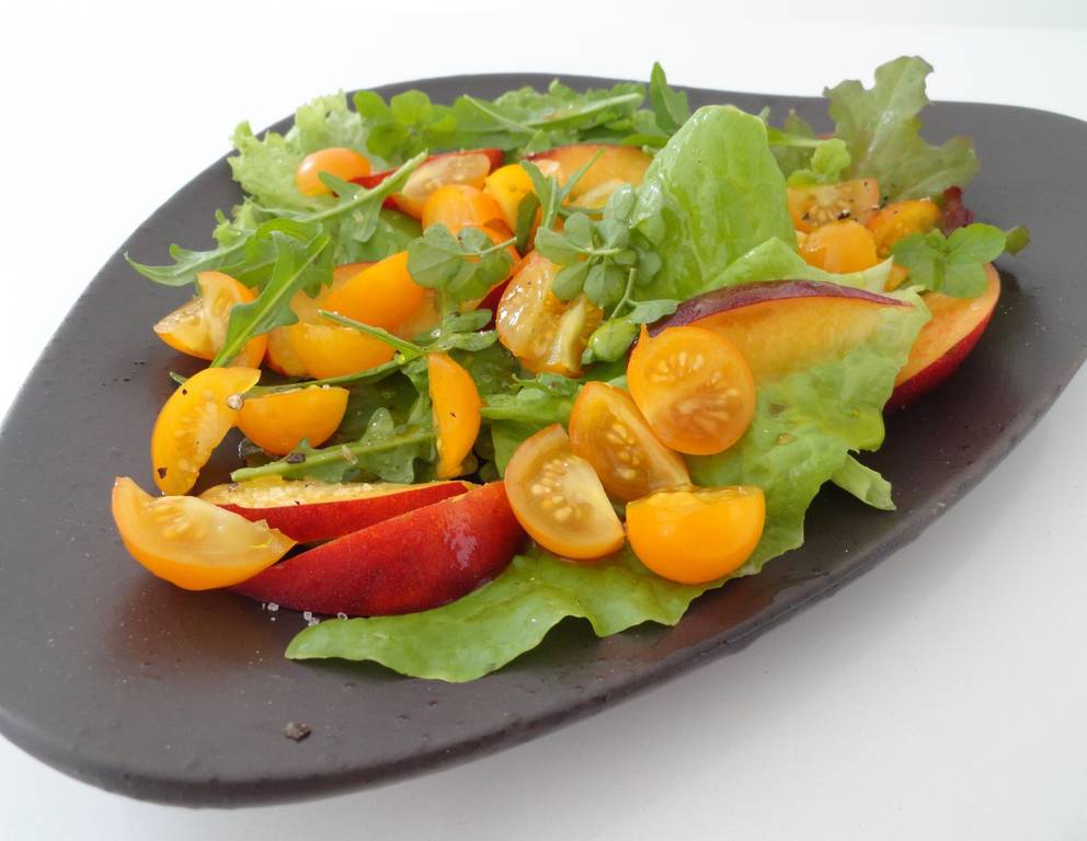 Statt den Pfirsichen können für den Pfirsich-Paradeiser-Salat mit Curry-Dressing auch Nektarinen verwendet werden.