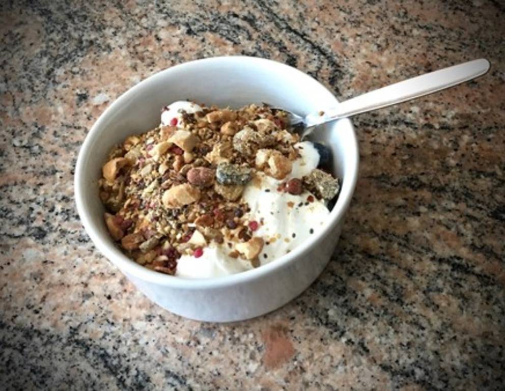 Sie können das Selbstgemachte Müsli auch auf Vorrat machen. Einfach die Mengen vervielfachen und vor dem Mischen mit Milch und Joghurt das Müsli kalt werden lassen und in einem luftdichten Glasbehälter aufbewahren. Es hält sich mehrere Tage.