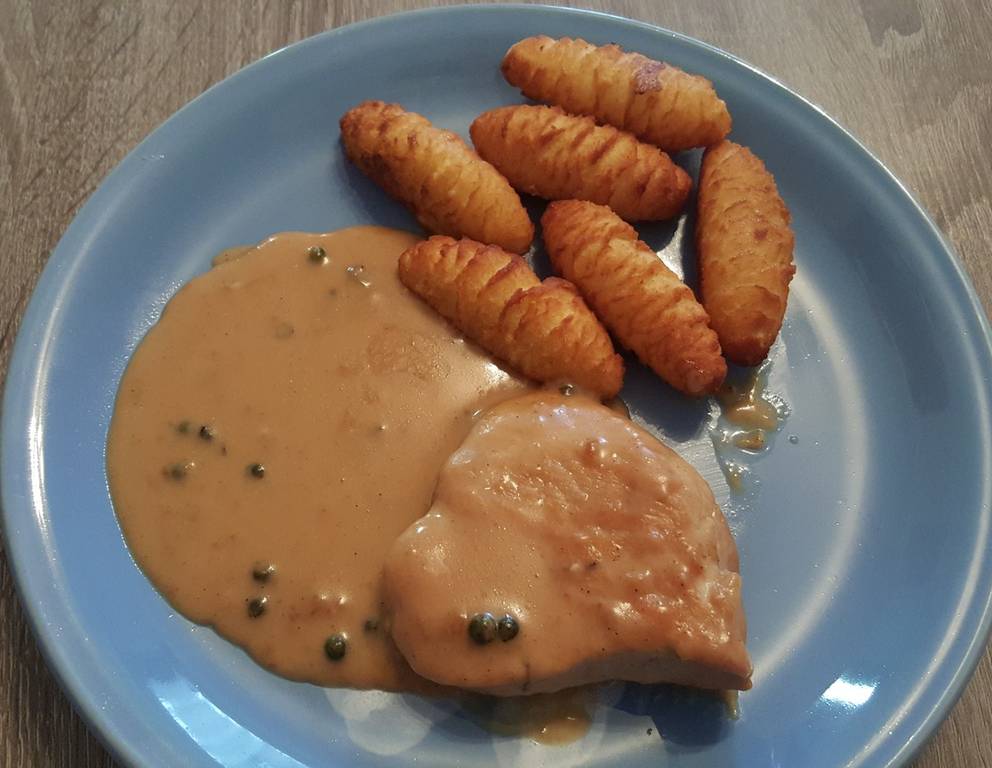 Die Pfefferrahmsauce passt hervorragend zu Steak oder Wild.
