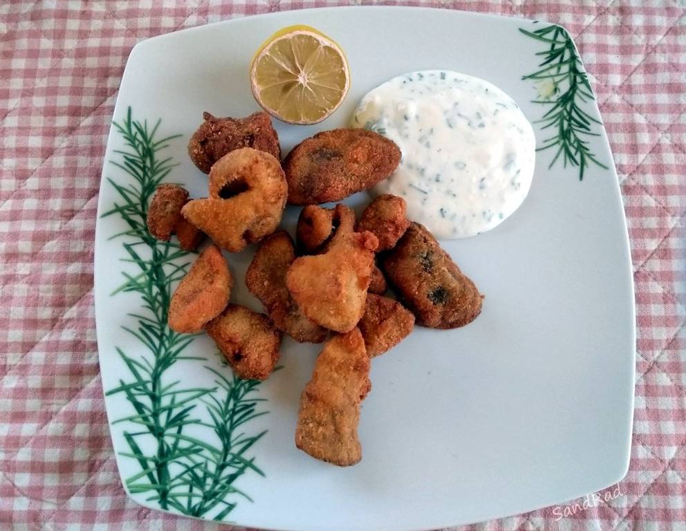 - Pflanzencreme in einer Pfanne erhitzen und die Pilze goldgelb ausbacken.