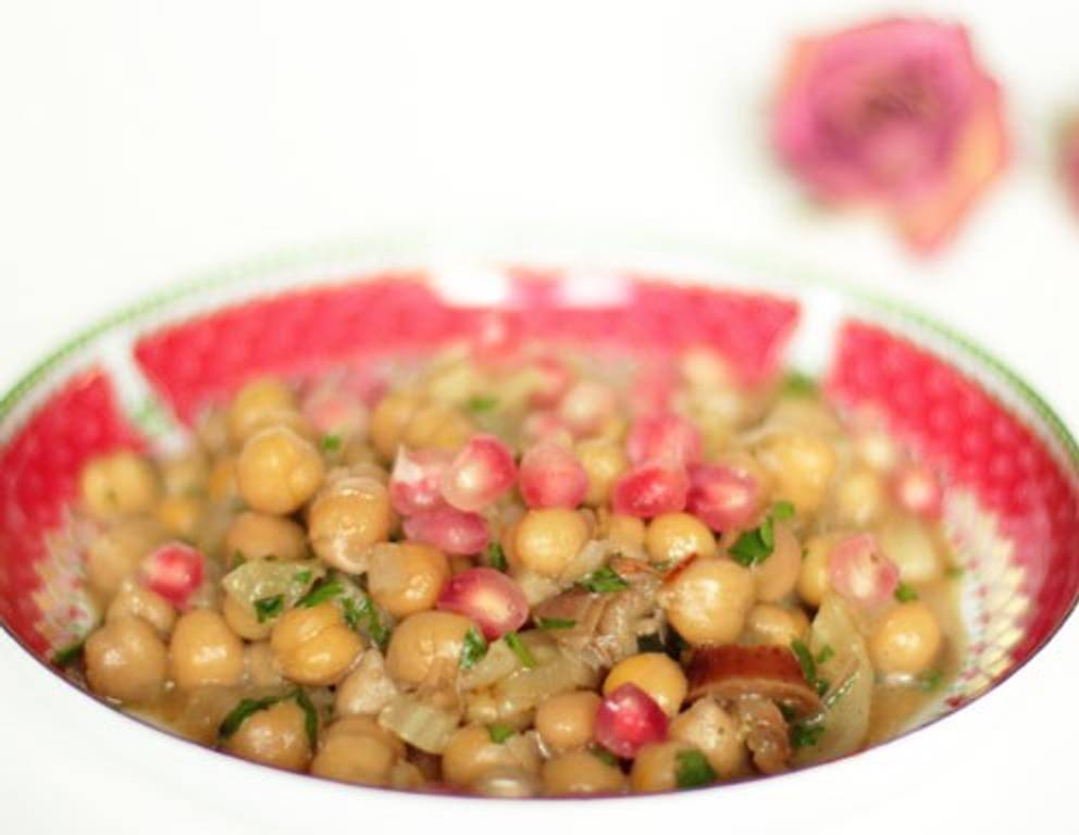 - Nun die Kichererbsen mit den gedünsteten Schalotten und den Datteln vermischen und mit dem Orangendressing marinieren.