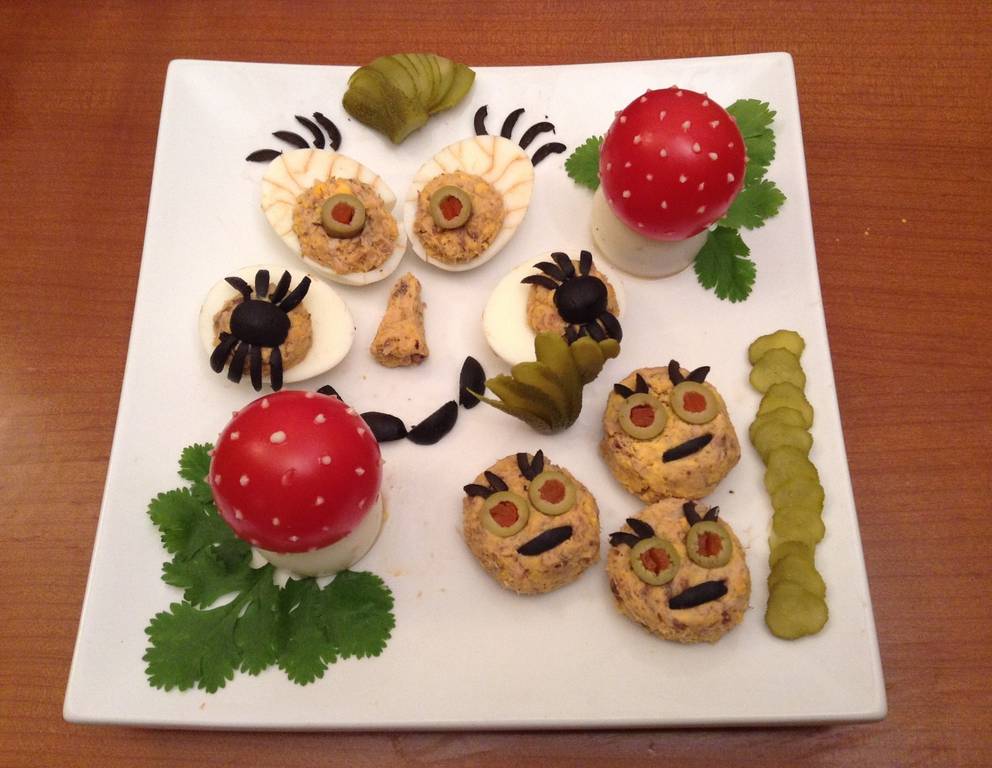 - Den Halloween Eier-Teller als Vorspeisenvariation servieren.