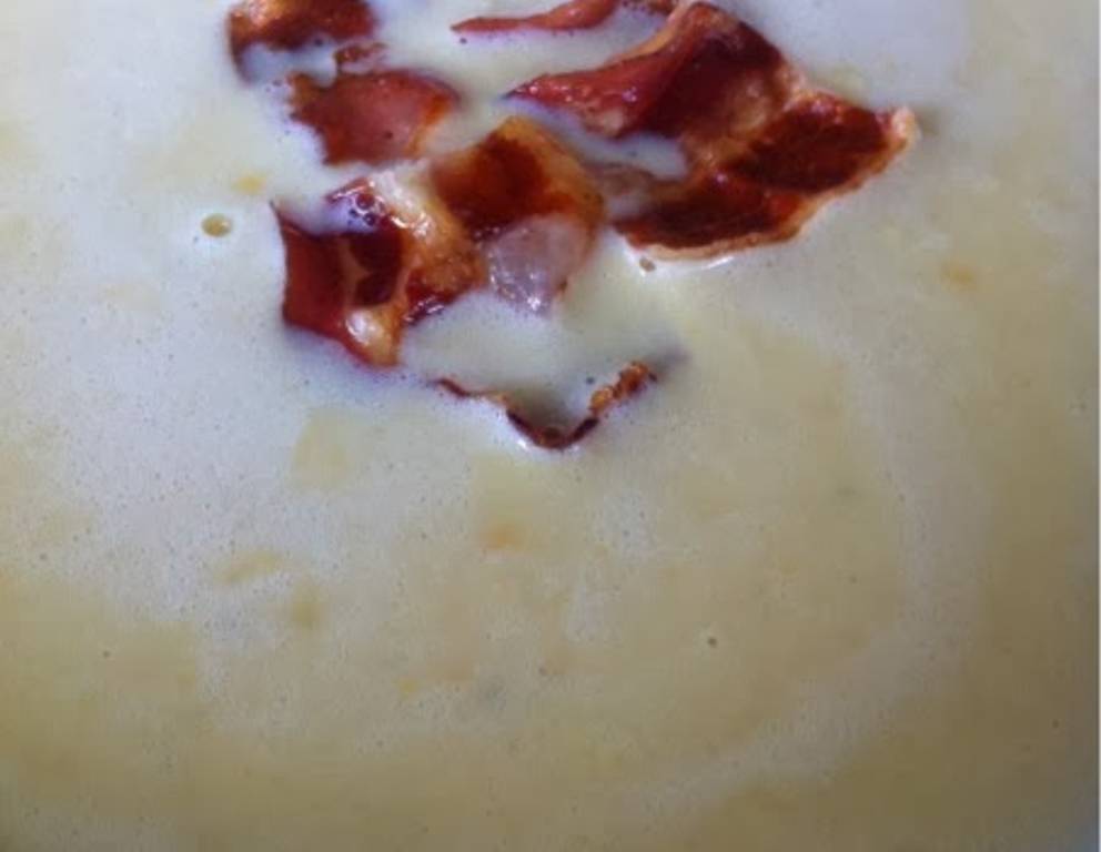 Gegebenfalls die Suppe über ein Sieb in einen zweiten Topf abgießen und den Mais zusätzlich pürieren. Das Maiscremesüppchen schmeckt auch ohne Speck köstlich. Wahlweise kann man auch eine Garnele anbraten und in die Mitte setzen.
