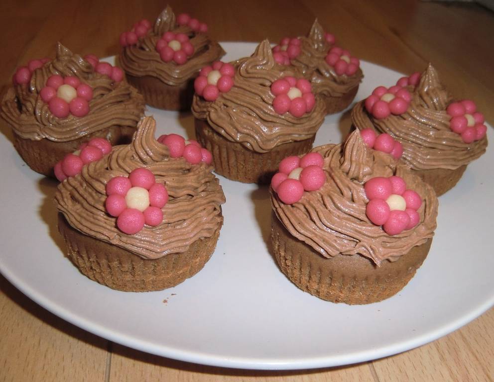 Sowohl vom Aussehen, als auch vom Geschmack her, passen Marzipanblumen ausgezeichnet, als Dekoration, zu den Schokoladen-Cupcakes.