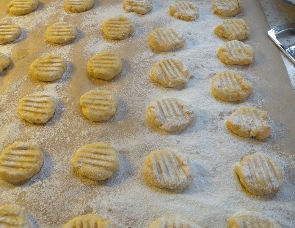 - Handliche Rollen formen, von denen man Stücke abschneidet und mit einer Gabel die typischen Gnocchistreifen aufdrücken.