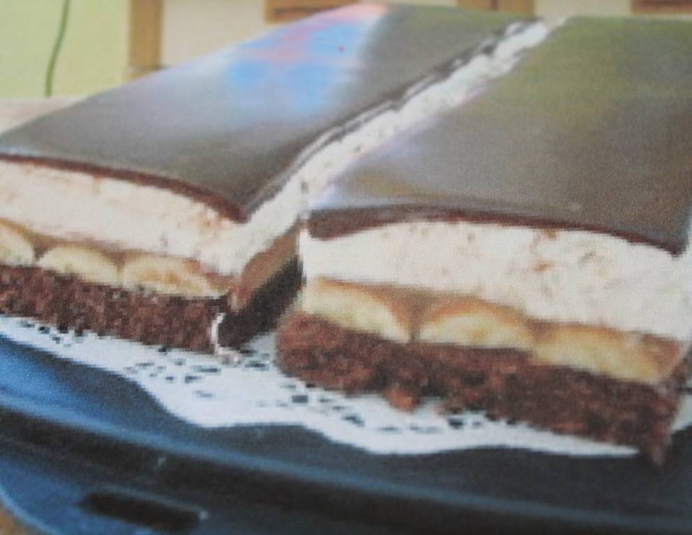 - Den Guss auf die Schlagobersschicht geben und die Bananenschnitten einige Stunden kalt stellen.