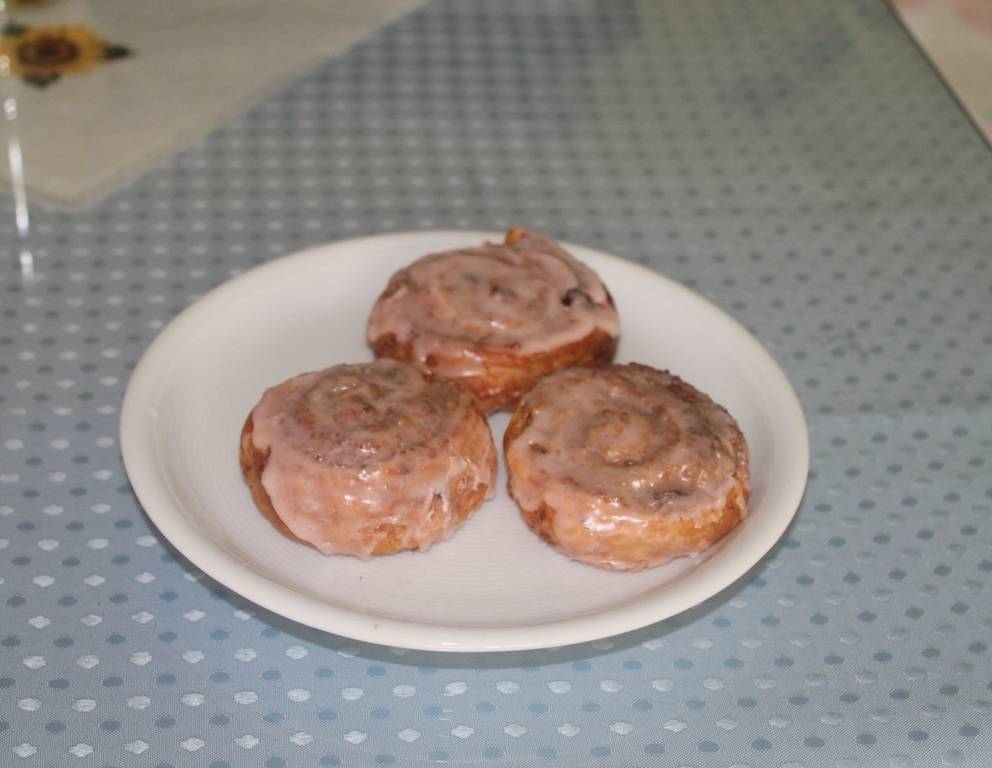 - Die Fülle auskühlen lassen und auf den ausgerollten Germteig streichen und mit Zimt bestreuen und einrollen. Scheiben von 2 cm Stärke abschneiden und etwas flach drücken und auf ein mit Backpapier ausgelegtes Backblech legen und bei 180°C Grad ca. 25 Minuten backen.