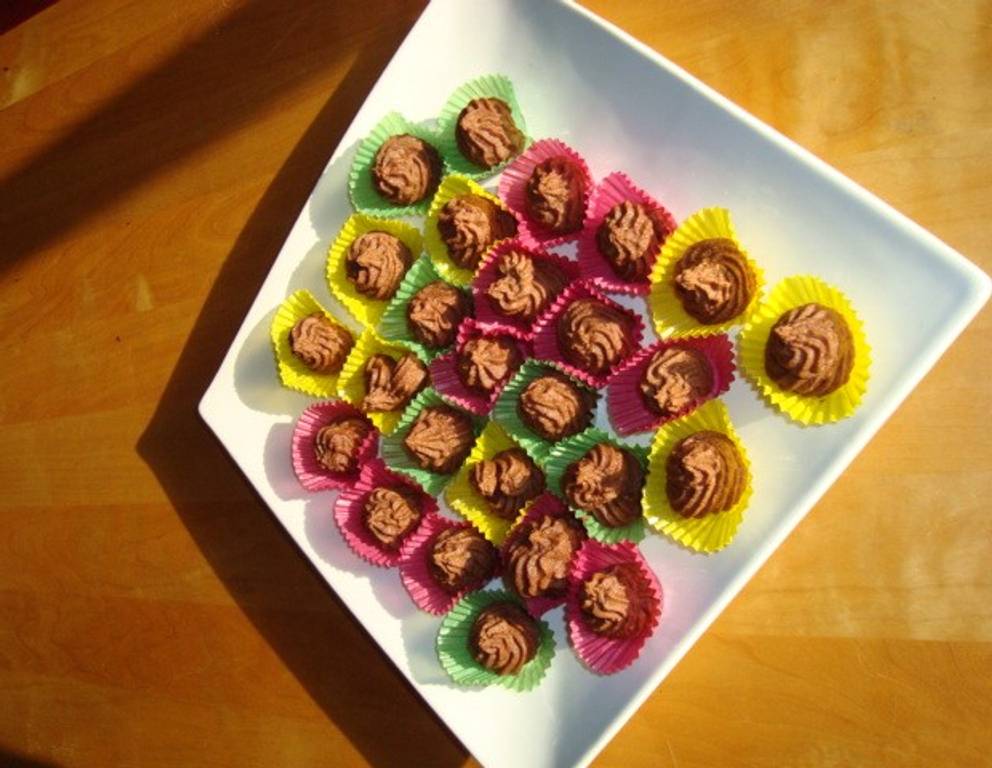 - In jede Konfektkapsel eine kleine Menge spritzen und das Maroni-Schoko-Konfekt mindestens 2 Stunden kühlen.