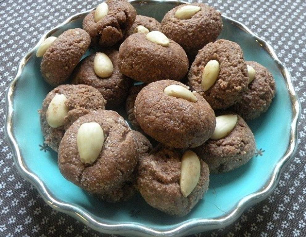 - Für die Schokofräzli die gemahlenen Mandeln, Zucker, Kardamom und Schokolade gut vermischen. Den in Wasser aufgelösten Löskaffee mit Eiklar versprudeln und unter die Teigmasse mischen.