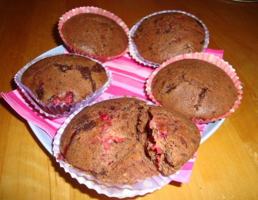 - Butter mit Vanillezucker, Zucker und einer Prise Salz schaumig rühren. Die Eier nach und nach dazugeben und mit dem Mixer untermengen. Die Milch einrühren. Das Mehl mit Backpulver und Kakaopulver mischen und unter die Buttermasse rühren: Dabei nur solange rühren, bis alles gerade gut vermengt ist. Zuletzt die Schokolade mit den Himbeeren unterheben.