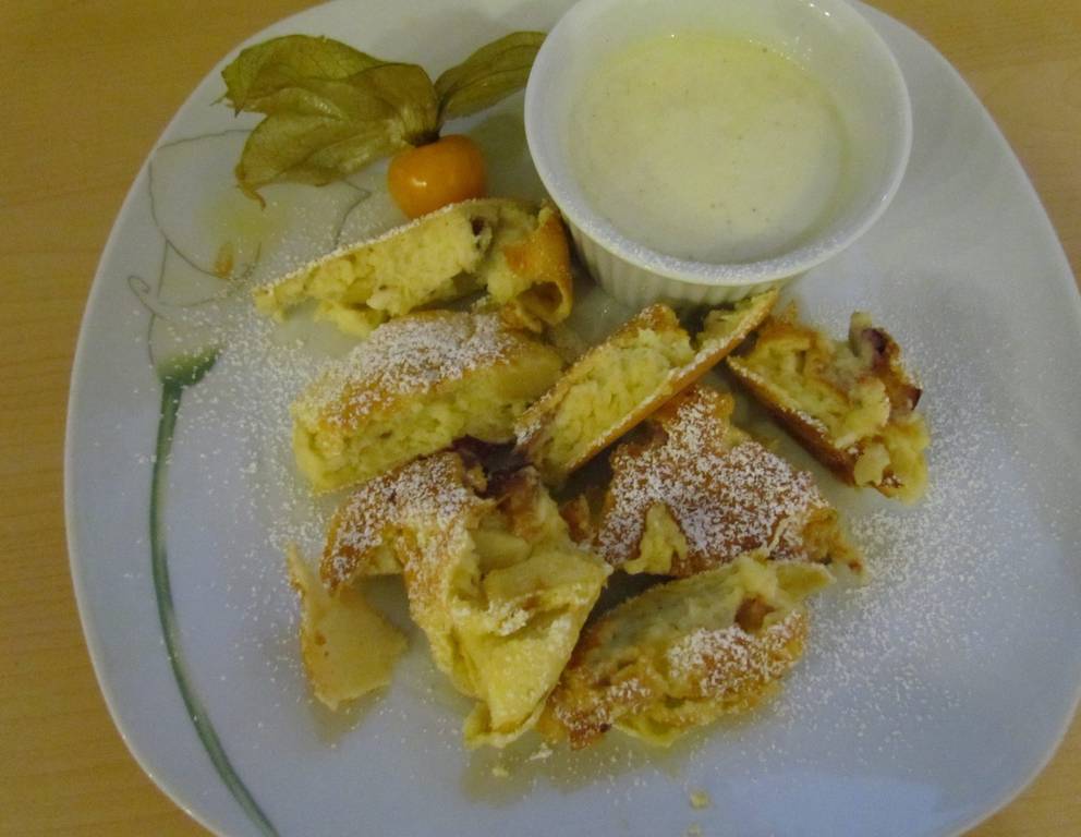 Der Apfel-Pflaumen-Physalis Schmarren schmeckt besonders köstlich, wenn man noch ein paar gehackte Walnüsser darüber streut.