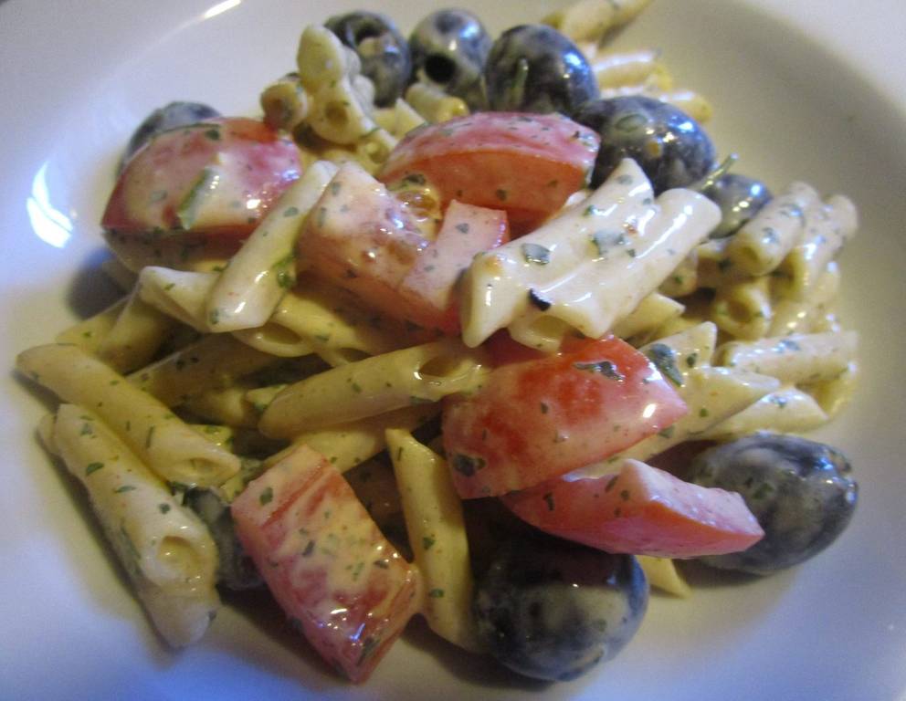 Der Nudelsalat ist ein schnelles Essen und eignet sich auch sehr gut als Büromahlzeit. Für die vegetarische Variante einfach den Schinken weglassen.