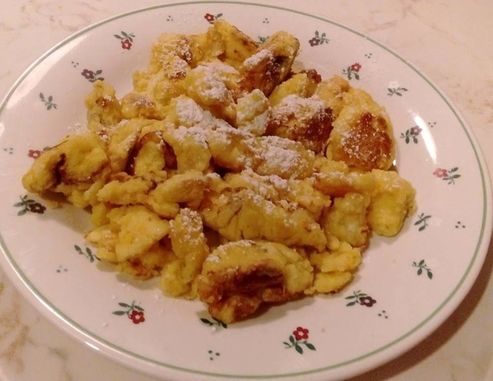 - Mit einer Gabel zerreissen. Auf Teller anrichten und den Grießschmarren mit Zucker bestreuen.