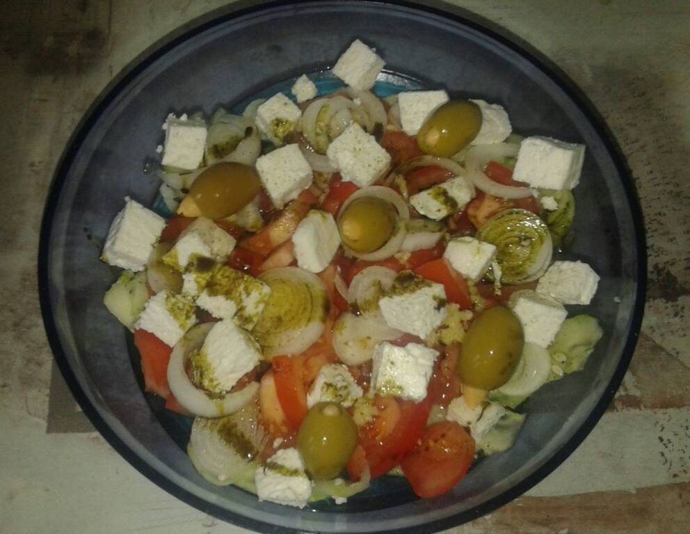 Griechischer Bauernsalat ist natürlich am besten mit frischem Baguette.