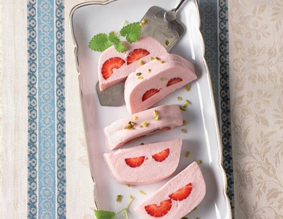 Möchten Sie der Erdbeersauce eine frische Note verleihen, so geben Sie noch einen halben Bund frische Minze hinzu. Der minzige Geschmack passt hervorragend zur Erdbeer-Rhabarber-Terrine.