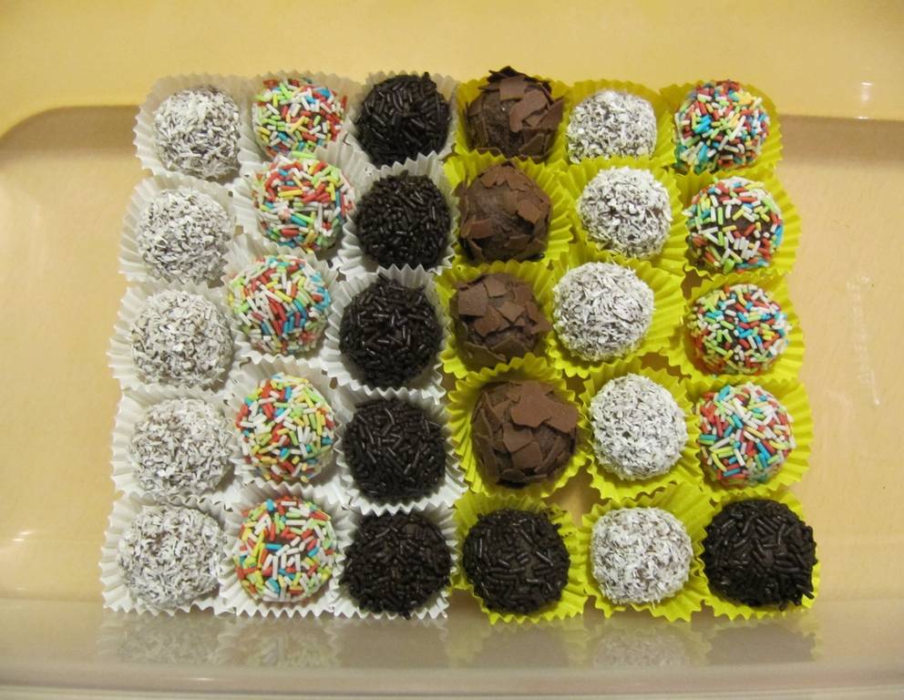 - Etwas anziehen lassen, danach Kugerl formen und in Schokostreusel, buntem Zucker oder geriebenen Haselnüssen wälzen. Die Rumkugeln Konfektkapseln geben und bis zum Verzehr kalt stellen.