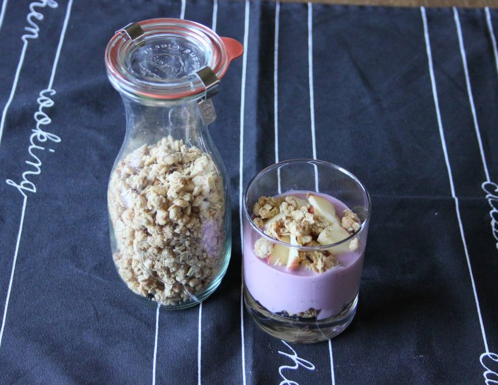 Auch einige Granatapfelkerne passen wunderbar zur Füllung des Müsli-Apfels.