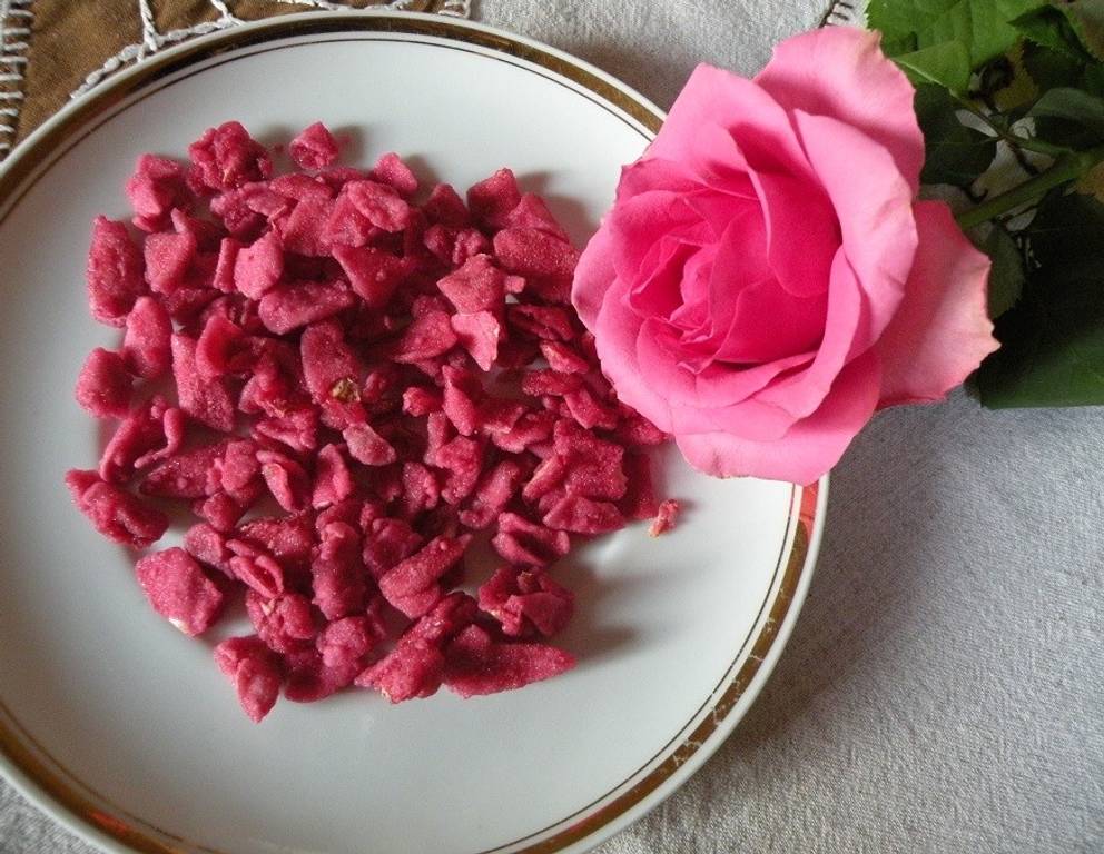 Die kandierten Rosablüten sind ideal, um Torten usw. zu verzieren.