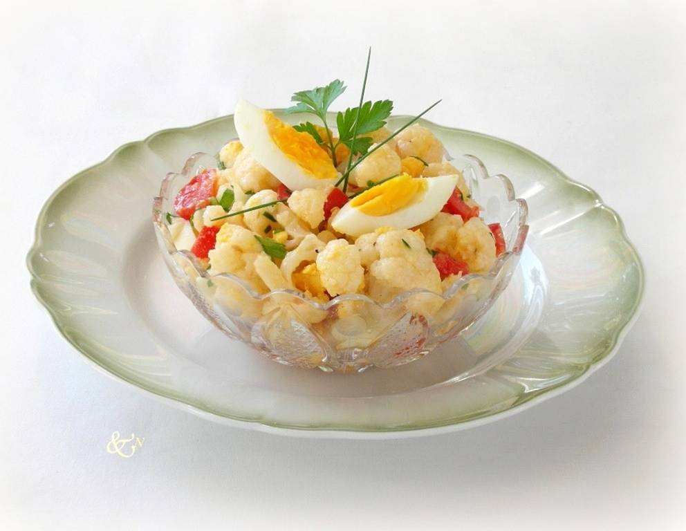 Der Karfiolsalat schmeckt auch ohne Eier.