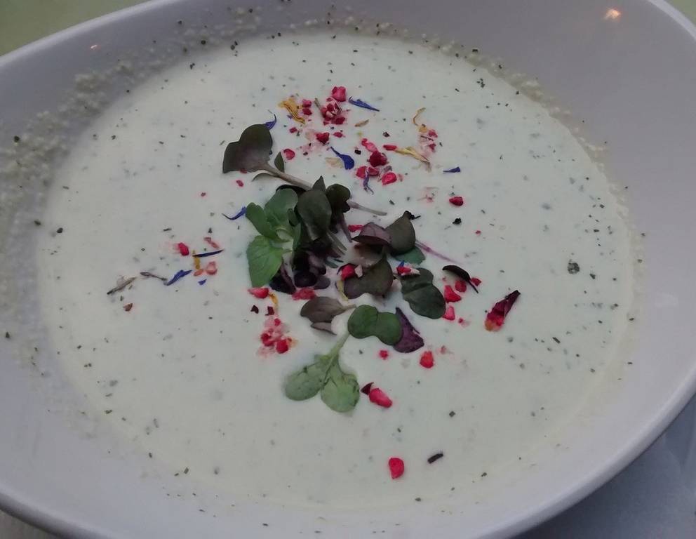 Diese Gurkensuppe ist ideal für heiße Sommertage und eine optimale Zwischenmahlzeit. Den Knoblauch kann man nach Belieben auch weglassen.
