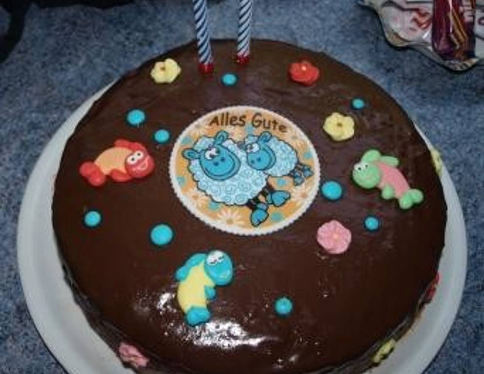 Die Schokoladen-Torte kann ganz nach Belieben auch anders dekoriert werden. Wer mag, streut noch gehackte Mandeln darüber.