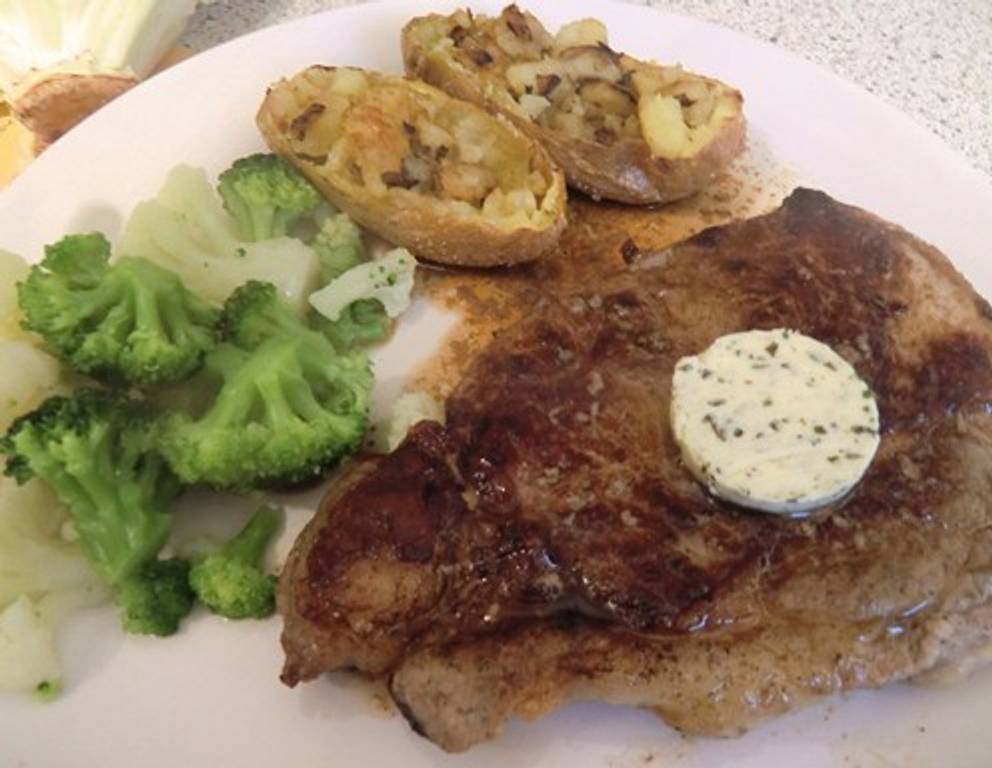Zum Rumpsteak passen hervorragend Kräuterbutter, gekochtes Gemüse und Kartoffeln.