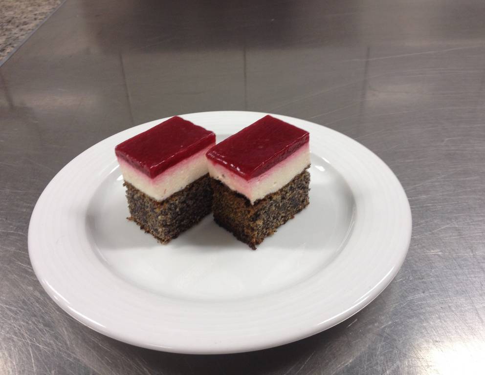 Garnieren Sie die Topfen-Mohntorte mit frischen Himbeeren und Minzblättern. Am besten gekühlt servieren.