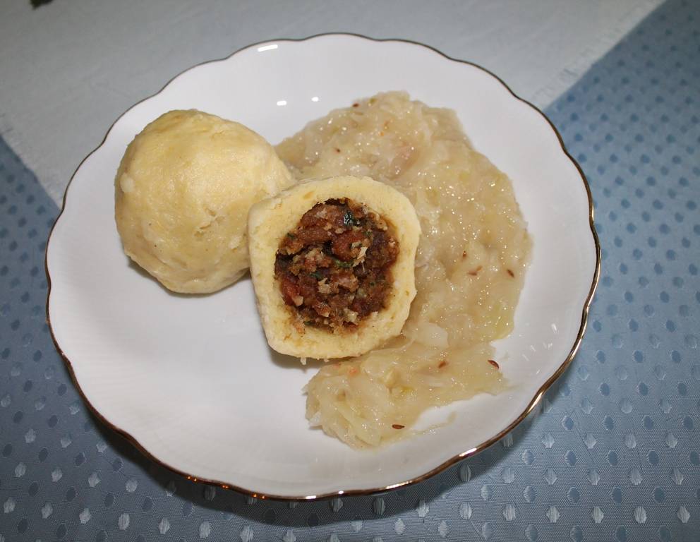 - Die Grammelknödel in kochendes Salzwasser einlegen und ca. 15 Minuten kochen. Grammelknödel herausnehmen und mit Sauerkraut servieren.