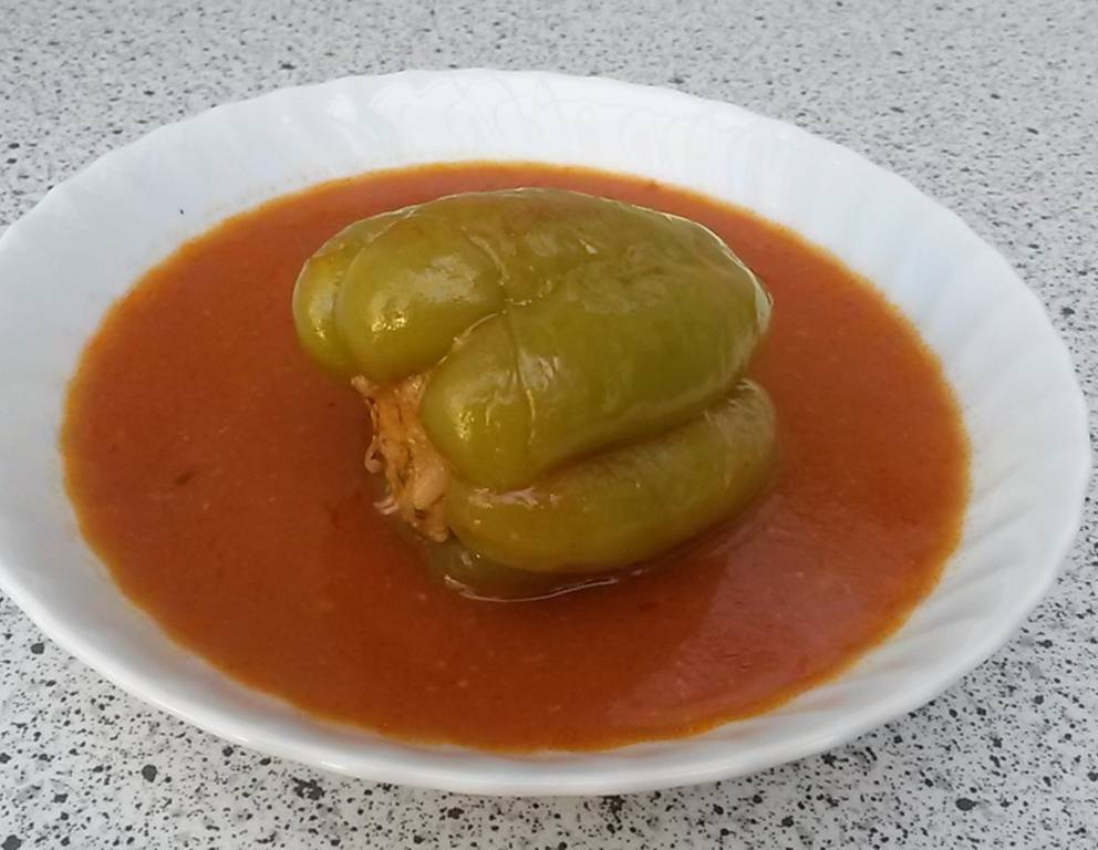 - Gefüllte Paprika mit der Tomatensauce anrichten und servieren.