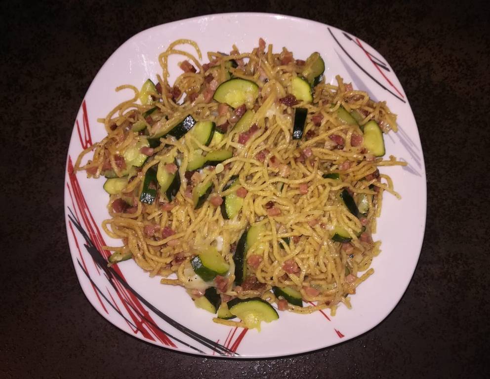 Für dieses Gericht können Sie jede beliebige Pastasorte nach eigenem Geschmack wählen. Mit etwas Speck kommt noch eine herzhafte Note hinzu.