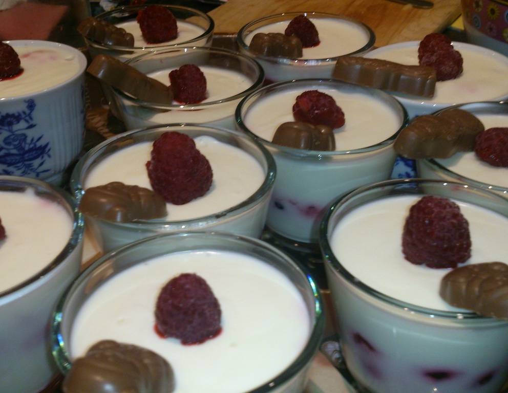 Servieren Sie die Terrine aus Sommerbeeren und Joghurt auf einer Fruchtsauce.