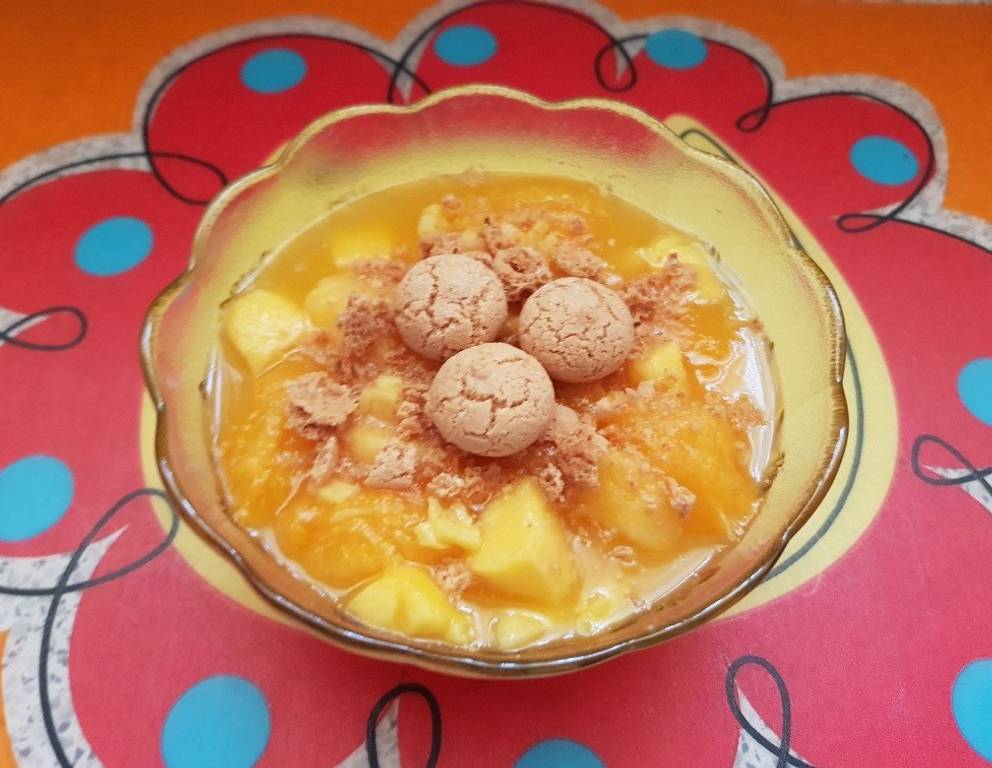 - Die Früchte abgekühlt stellen und mit den Amarettini bestreut zu Tisch bringen. Wer mag, kann ebenfalls eine Kugel Vanilleeis dazu anbieten.