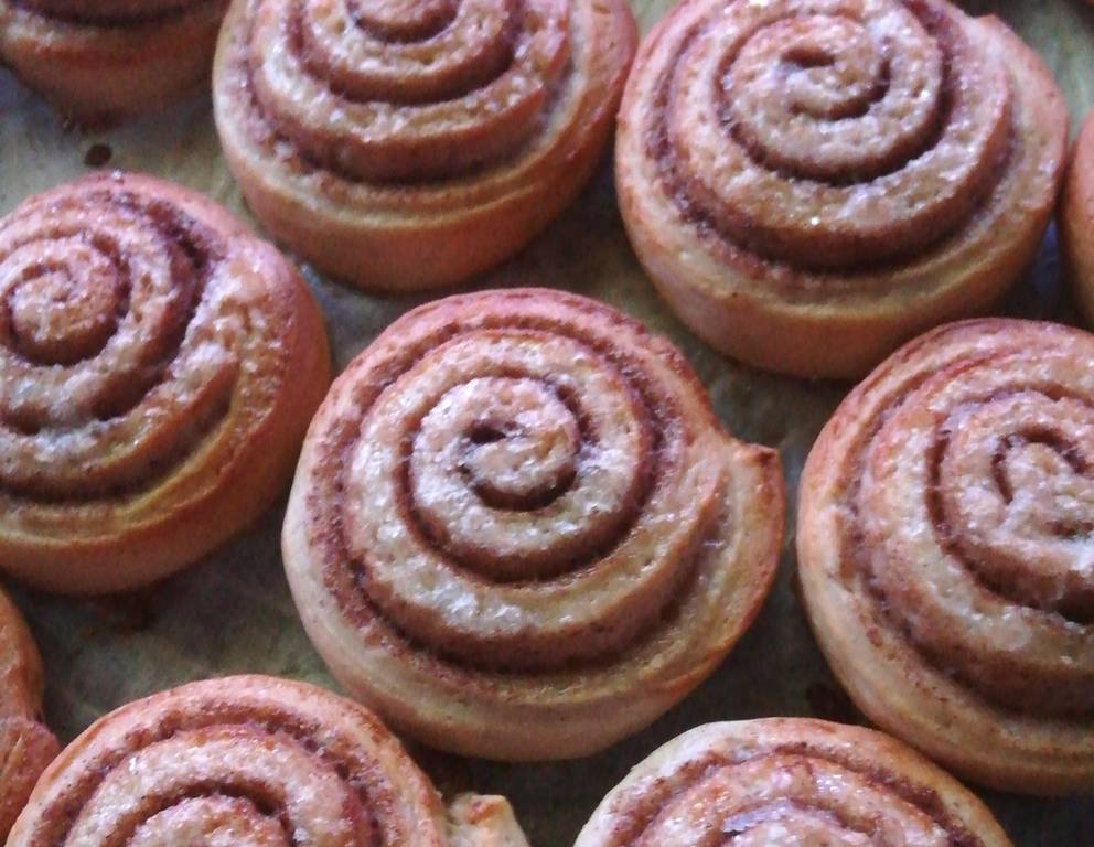 - Aufrollen und etwa 1, 5-2 cm dicke Scheiben schneiden. 20 min auf einem Blech aufgehen lassen. Evtl. mit Ei oder Milch bestreichen.