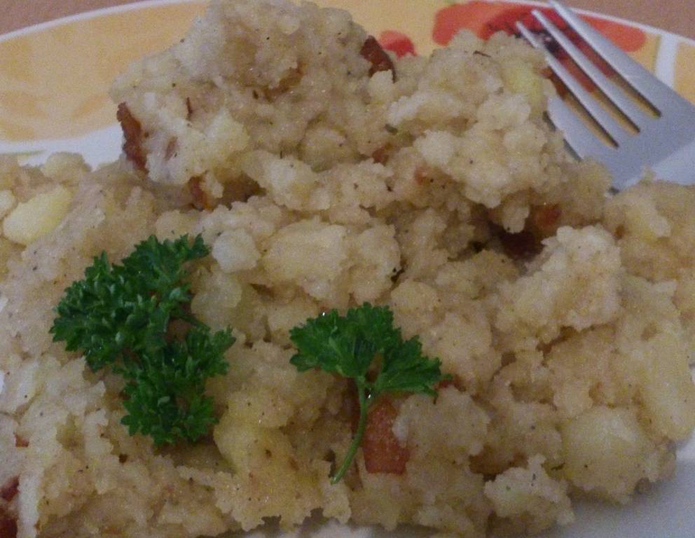 In vielen Gegenden werden zum Erdäpfelsterz auch gerne frische Schwammerlsuppe oder saure Rahmsuppe serviert. Für einen klassischen Schwammerl-Erdäpfelsterz werden Pilze oder Schwammerln mit dem Sterz geröstet oder extra angeröstet und erst vor dem Auftragen untergemischt.