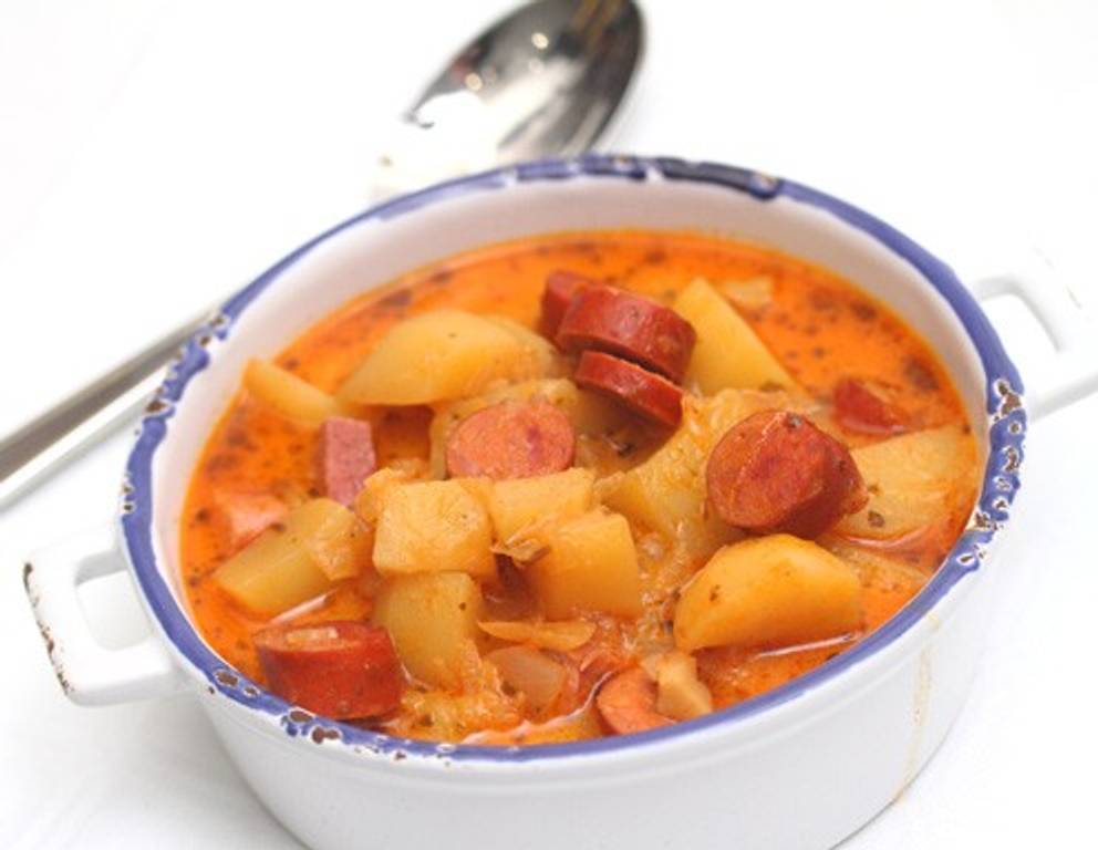 Das Erdäpfelgulasch kann auch mit einer beliebigen anderen Wurst gemacht werden, falls keine Braunschweiger verfügbar.