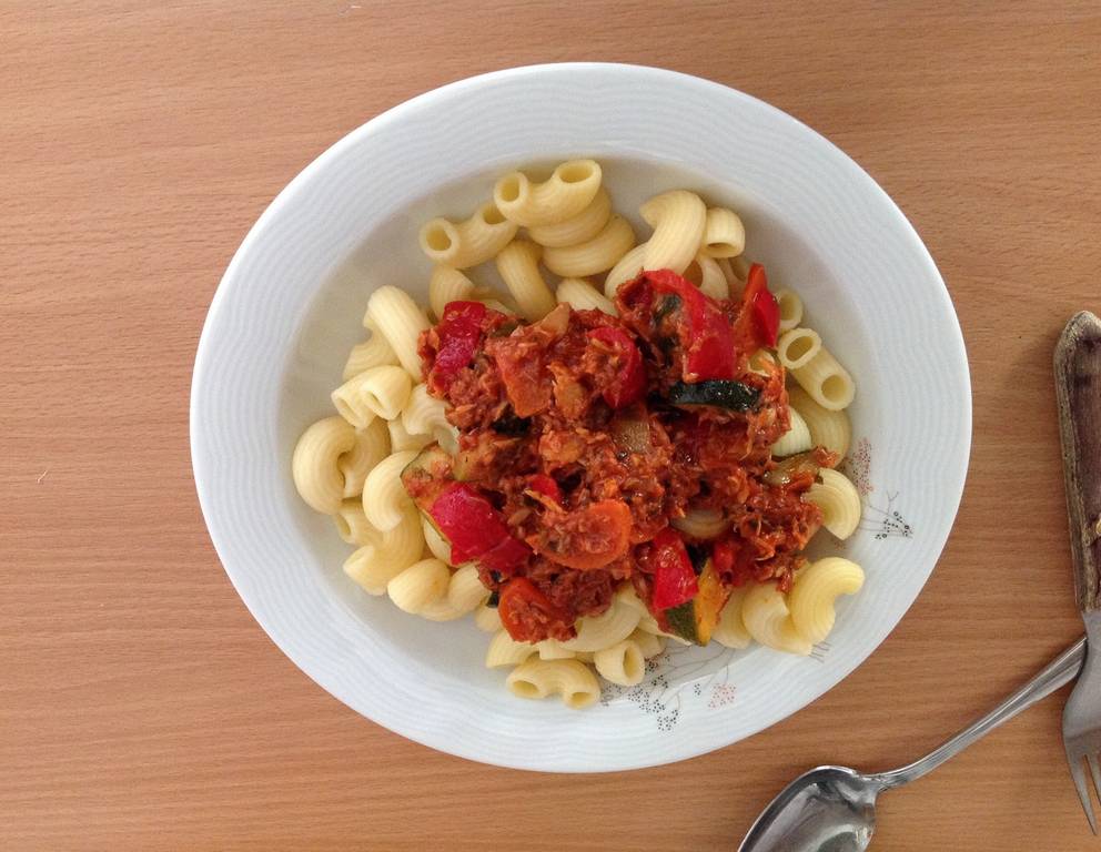 Wer mag kann auch anderes Gemüse für die Thunfischpasta verwenden.