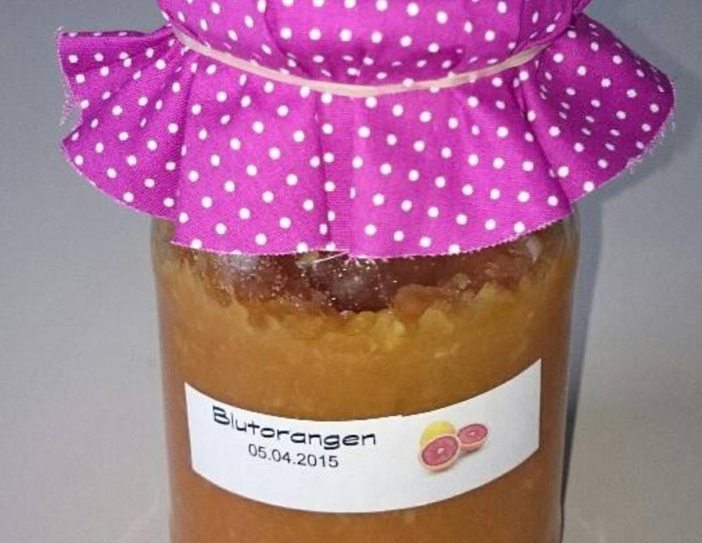 - Die Blutorangenmarmelade in heiß ausgespülte Marmeladegläser füllen, fest verschließen und fünf Minuten auf den Deckel stellen.