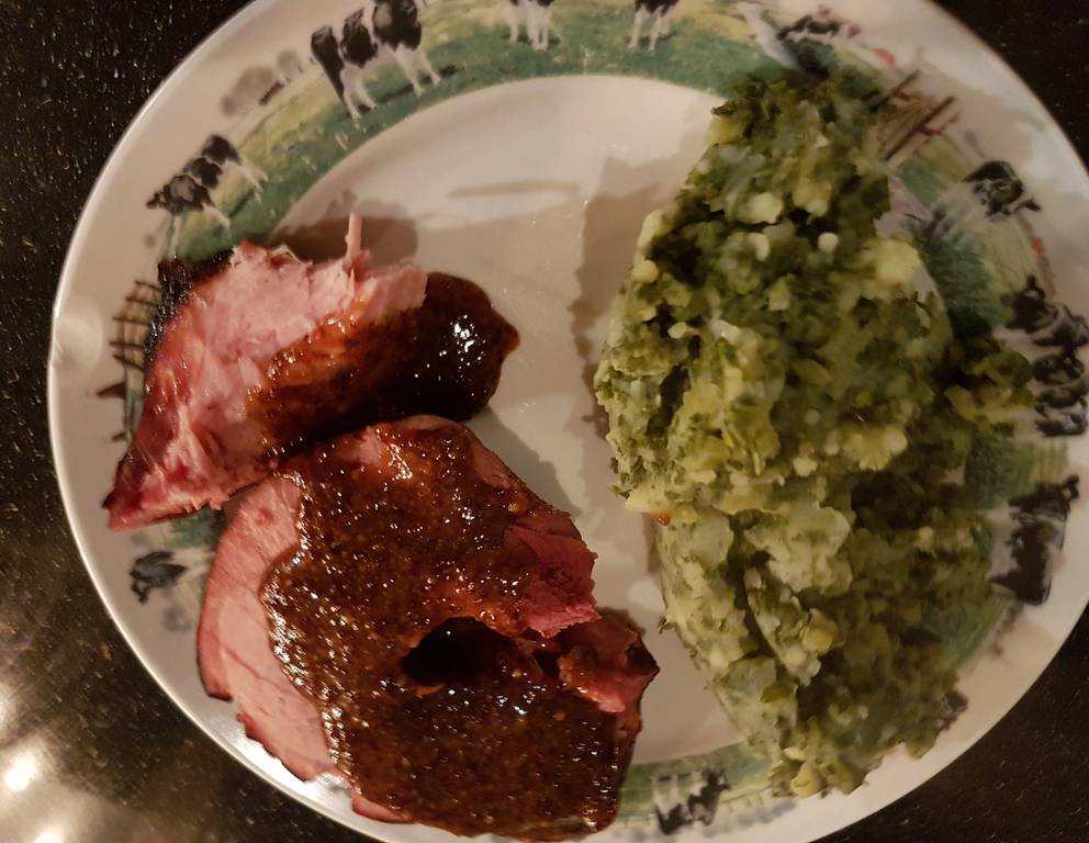 - Honig, Bier und Senf verquirlen. Nach 1 Stunde die Schweineschwarte mit der Mischung einstreichen, öfters wiederholen. Bei Bedarf ein kleines bisschen Suppe nachgiessen.