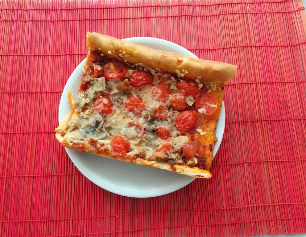 - Olivenöl mit gehacktem Knoblauch vermischen. Den Pizzarand mit Knoblauchöl bestreichen und die Tomatenpizza im gut vorgeheizten Backrohr ca. 10-12 Minuten backen.