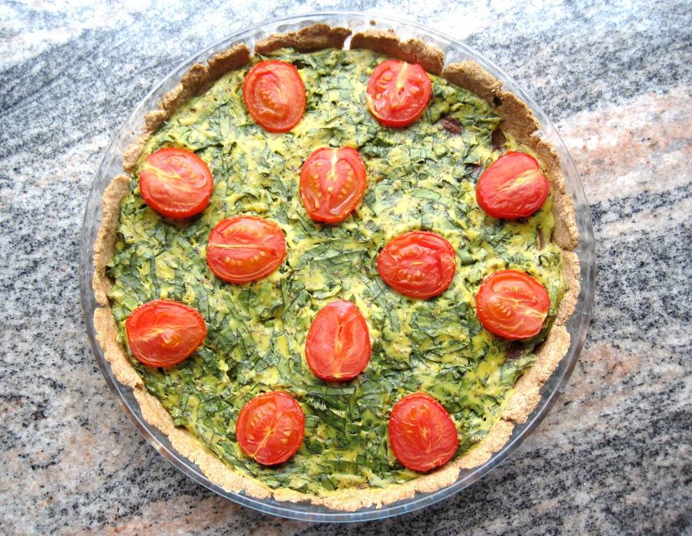 Außerhalb der Bärlauchzeit, kann man die Quiche mit Spinat zubereiten.