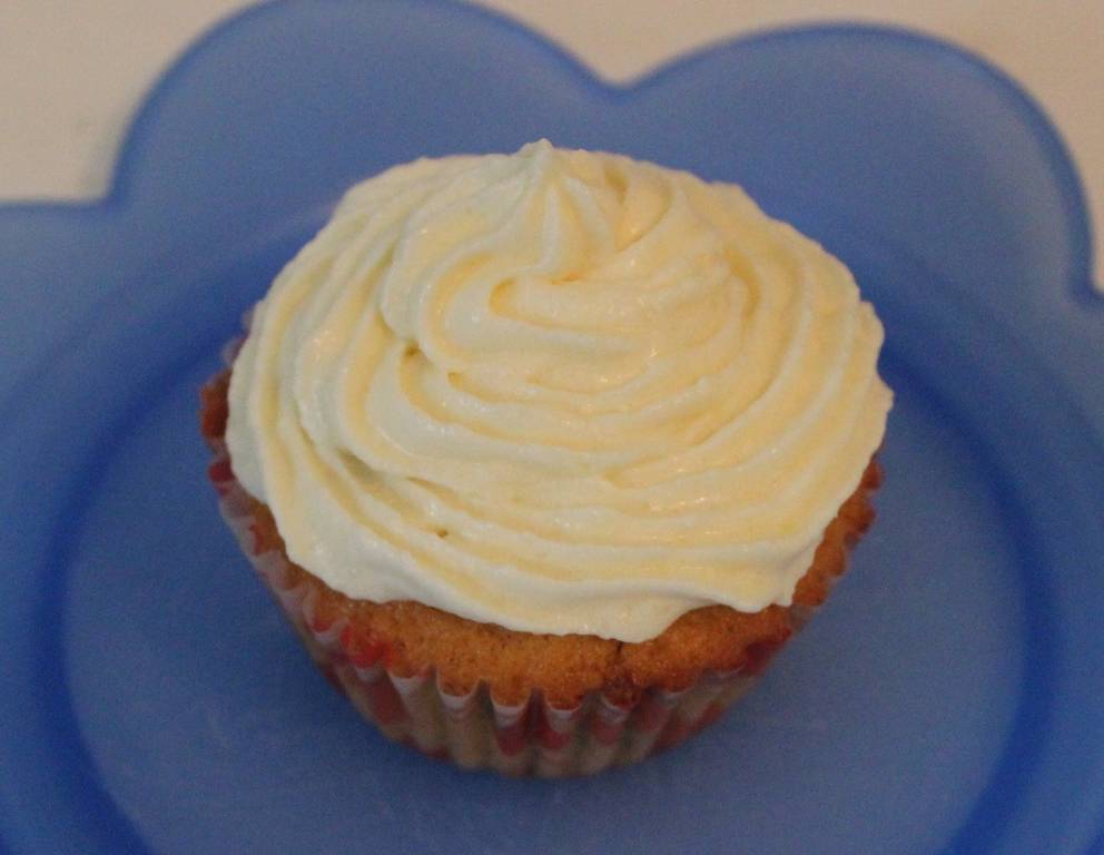 - Nach der Kühlzeit mit einem Spritzbeutel mit Sterntülle auf abgekühlte Muffins spritzen.