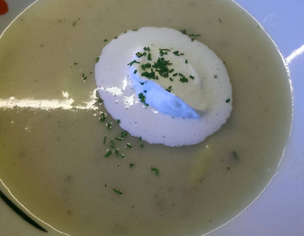 Wenn man nicht das ganze Schlagobers in die Spargelcremesuppe gibt, kann man es aufschlagen und einen Löffel oben draufgeben.