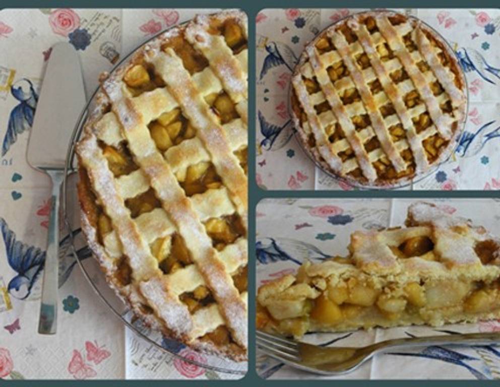 - Das Karamell aufkochen, die Stärke mit 1 EL Wasser verrühren und zum dem Karamell dazu geben. Die Äpfel und die Rhabarberkonfitüre mit dem Karamel vermengen. Die Tarteform (28cm) mit Butter einfetten und mit Mehl bestäuben. Das Backrohr auf 180C aufheizen. Das Marzipan in der Größe des Tartsbodens ausrollen. 2 Drittel des Teiges ausrollen und in die Tartform legen und leicht andrücken. Die Apfelmasse einfüllen, aus dem verbleibenden drittel Streifen schneiden. Diese Gitterförmig über die Apfelmasse legen. Das Eigelb und die Milch verrühren und damit die Teigstreifen bestreichen. Für ca. 45 Minuten backen, nach dem auskühlen die Apfel-Marzipan-Rhabarber Tarte mit Staubzucker bestäuben.